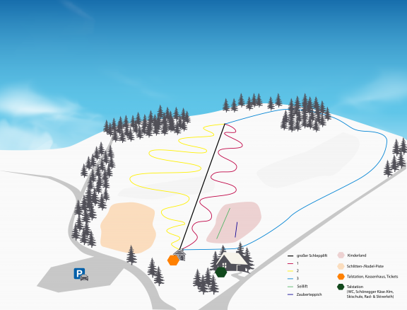 - Ein flacher Hang, Förderteppich und Kinderseillift